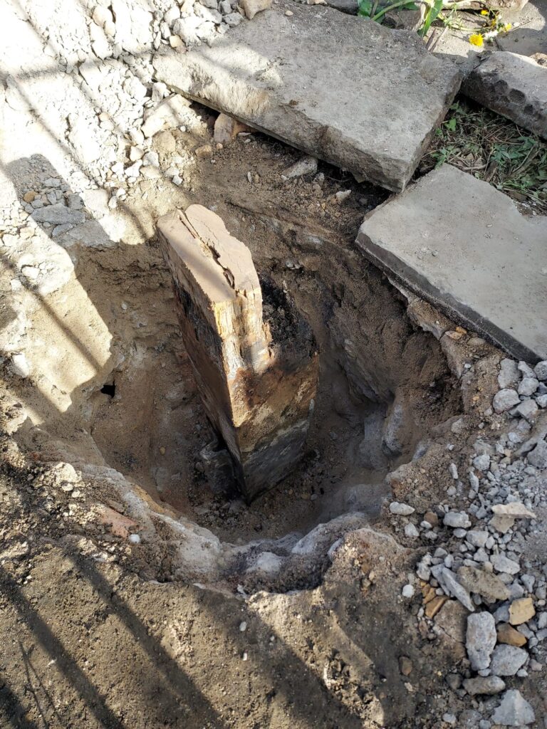 There is a deep excavation to remove the rest of the old timber.